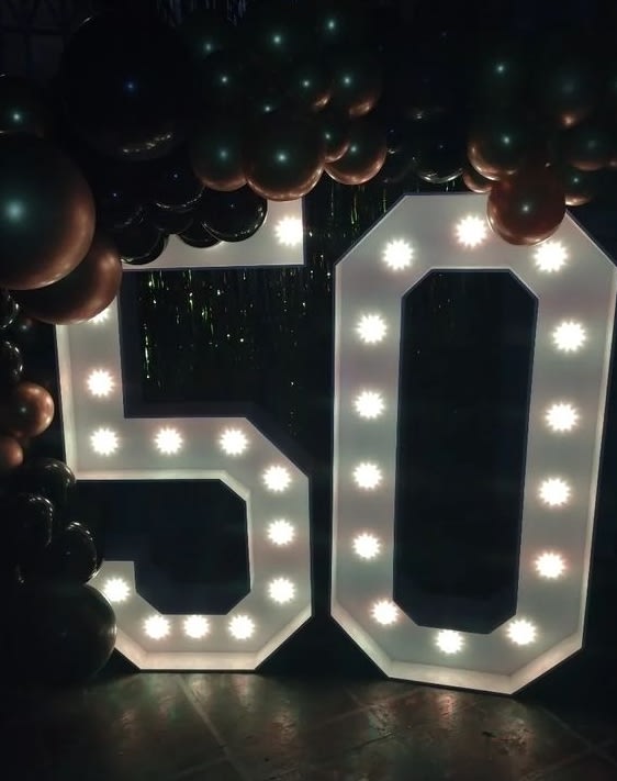 Our LED Number 50 is especially popular for commemorating significant events such as 50th birthdays, golden anniversaries, or any special occasion marking half a century. Unlike standard light-up numbers, ours can be programmed to illuminate in various colours, including red, blue, or green, allowing you to perfectly match your event's colour scheme.